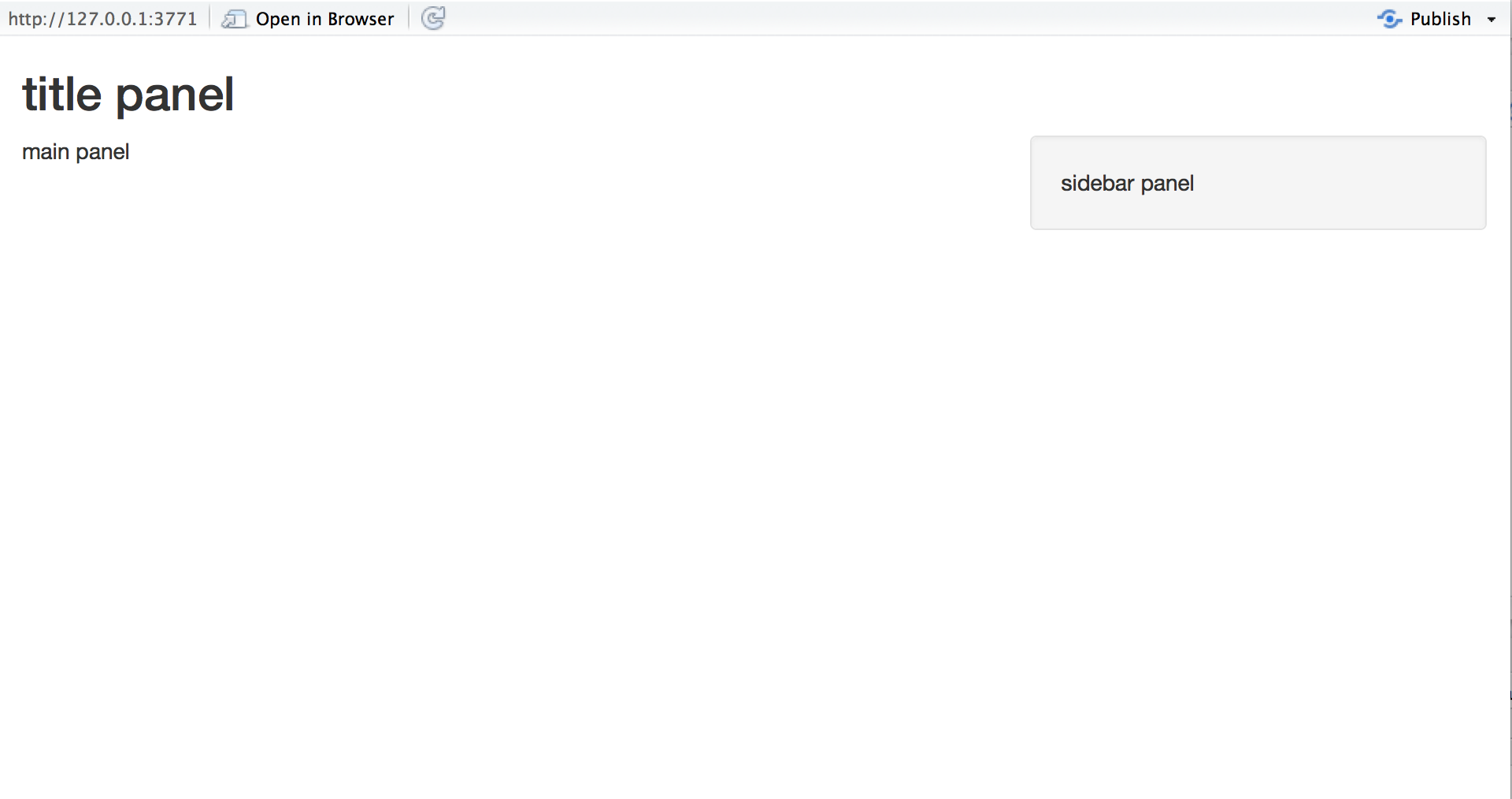 上のサーバ関数でアプリを実行すると、メインパネルに “You have selected this” と表示されます。ただし、テキストは反応(reactive)しません。アプリのウィジェットを操作しても変更されません。